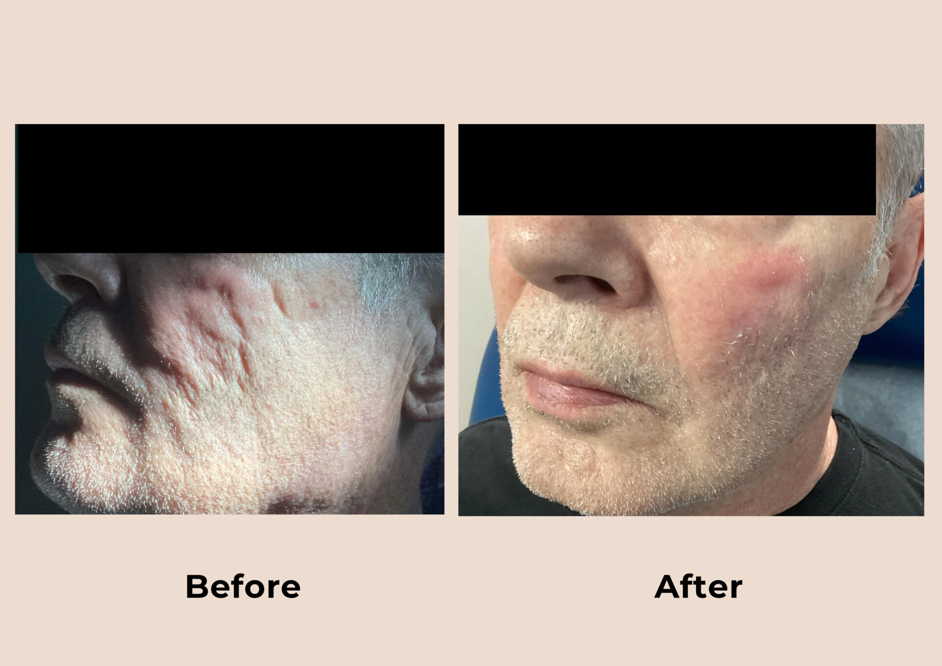 A 64-year-old male with distensible rolling scars and volume loss was treated with Taylor Liberator subcision followed by 4 mL of Restylane Lyft using both cannula and needle technique.