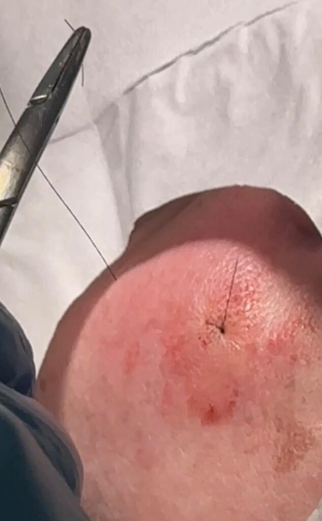 2 . The skin is closed with a very small stitch.